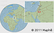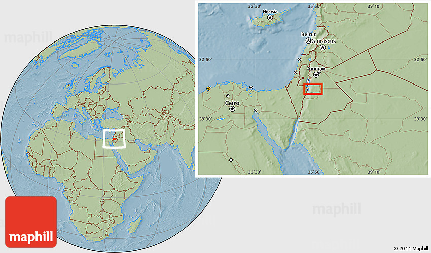 Maphill is a collection of map images. This image combines a savanna style map with the globe centered on the area around 31° 11' 6" N, 35° 46' 29" E. Use the buttons under the image to switch to different map types.