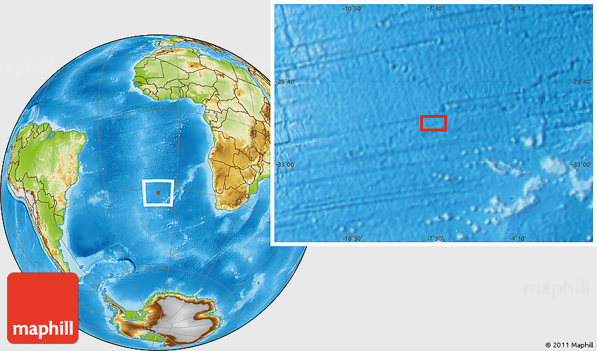 Maphill is a collection of map images. This image combines a physical map with the globe centered on the area around 31° 20' 36" S, 7° 34' 30" W. Use the buttons under the image to switch to different map types.