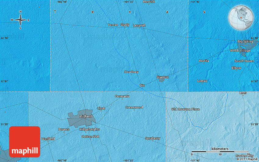 The value of Maphill lies in the possibility to look at the same area from several perspectives. Maphill presents the map of the area around 32° 8' 5" N, 101° 55' 30" W in a wide variety of map types and styles.