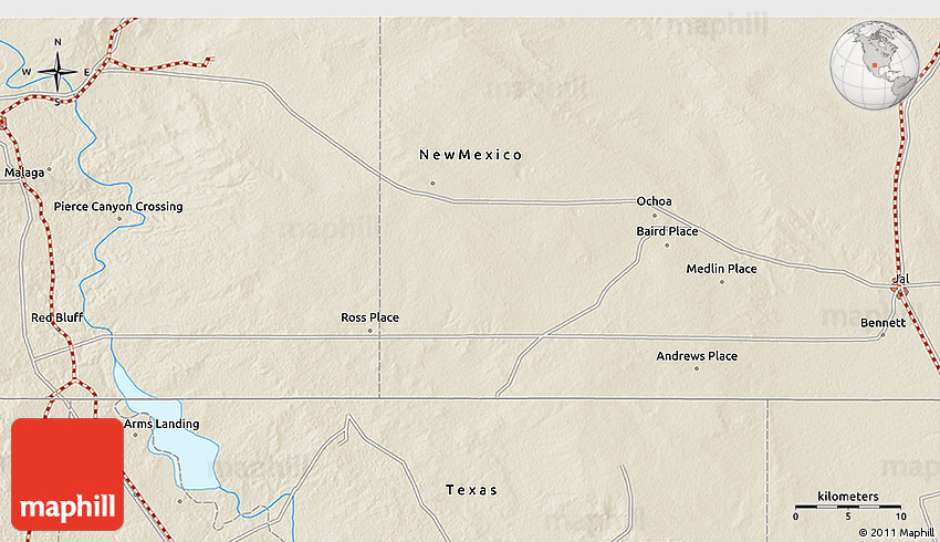 The value of Maphill lies in the possibility to look at the same area from several perspectives. Maphill presents the map of the area around 32° 8' 5" N, 103° 37' 30" W in a wide variety of map types and styles.