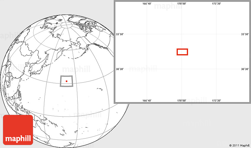 Maphill is a collection of map images. This image combines a blank map with the globe centered on the area around 32° 8' 5" N, 170° 4' 29" E. Use the buttons under the image to switch to different map types.