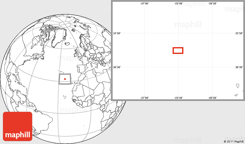 Maphill is a collection of map images. This image combines a blank map with the globe centered on the area around 32° 8' 5" N, 23° 43' 30" W. Use the buttons under the image to switch to different map types.