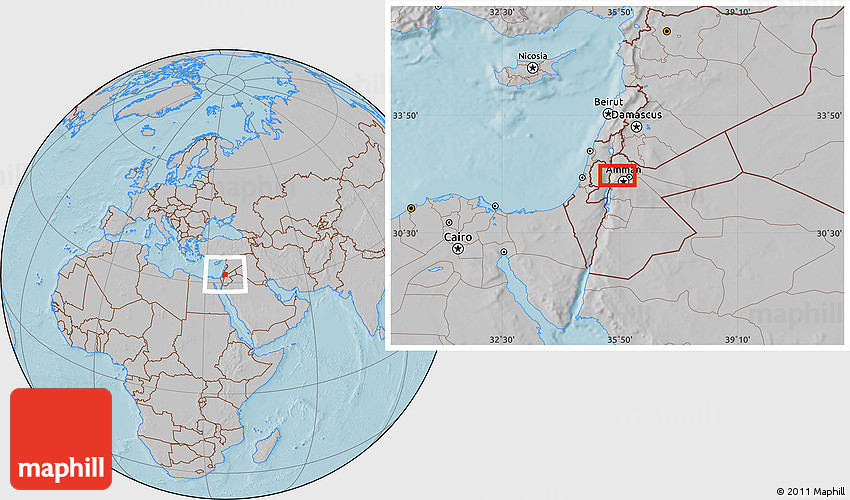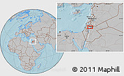 Maphill is a collection of map images. This image combines a gray map with the globe centered on the area around 32° 8' 5" N, 35° 46' 29" E. Use the buttons under the image to switch to different map types.