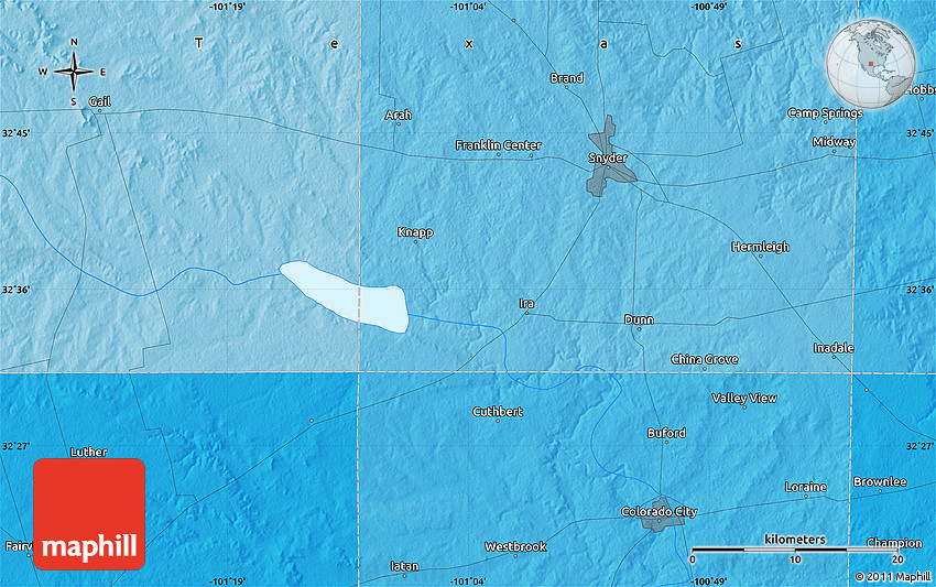 The value of Maphill lies in the possibility to look at the same area from several perspectives. Maphill presents the map of the area around 32° 36' 26" N, 101° 4' 29" W in a wide variety of map types and styles.