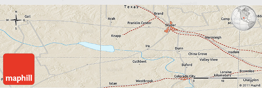 The value of Maphill lies in the possibility to look at the same area from several perspectives. Maphill presents the map of the area around 32° 36' 26" N, 101° 4' 29" W in a wide variety of map types and styles.