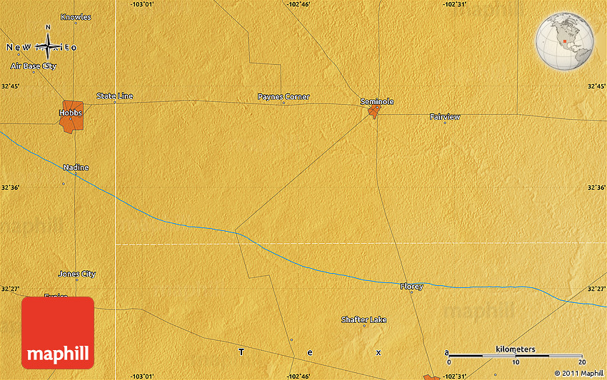Maphill is a collection of map images. This physical map of the area around 32° 36' 26" N, 102° 46' 30" W is one of them. Click on the Detailed button under the image to switch to a more detailed map.
