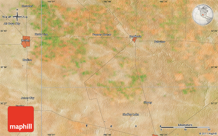 The value of Maphill lies in the possibility to look at the same area from several perspectives. Maphill presents the map of the area around 32° 36' 26" N, 102° 46' 30" W in a wide variety of map types and styles.