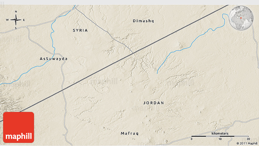 The value of Maphill lies in the possibility to look at the same area from several perspectives. Maphill presents the map of the area around 32° 36' 26" N, 37° 28' 30" E in a wide variety of map types and styles.