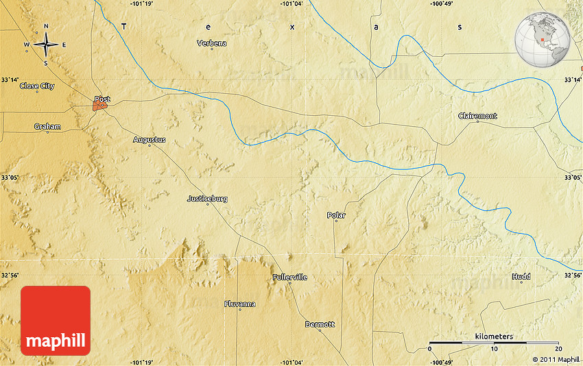 Maphill is a collection of map images. This physical map of the area around 33° 4' 42" N, 101° 4' 29" W is one of them. Click on the Detailed button under the image to switch to a more detailed map.