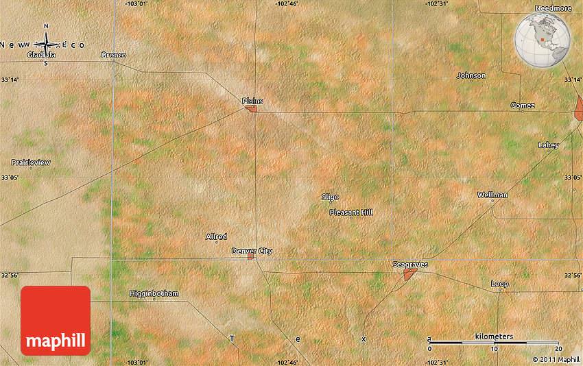 Maphill is a collection of map images. This satellite map of the area around 33° 4' 42" N, 102° 46' 30" W is one of them. Click on the Detailed button under the image to switch to a more detailed map.