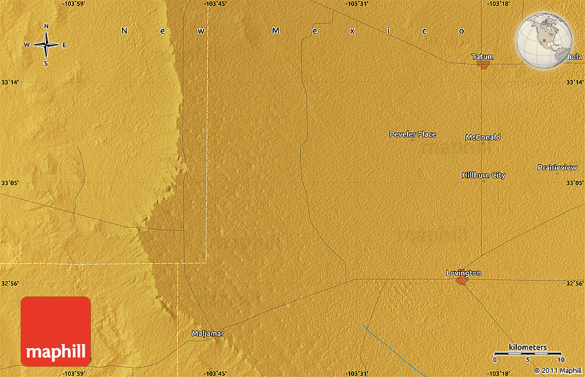 Maphill is a collection of map images. This physical map of the area around 33° 4' 42" N, 103° 37' 30" W is one of them. Click on the Detailed button under the image to switch to a more detailed map.