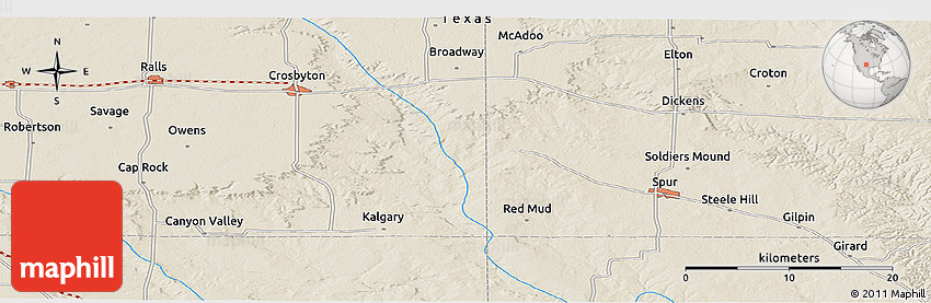 The value of Maphill lies in the possibility to look at the same area from several perspectives. Maphill presents the map of the area around 33° 32' 52" N, 101° 4' 29" W in a wide variety of map types and styles.