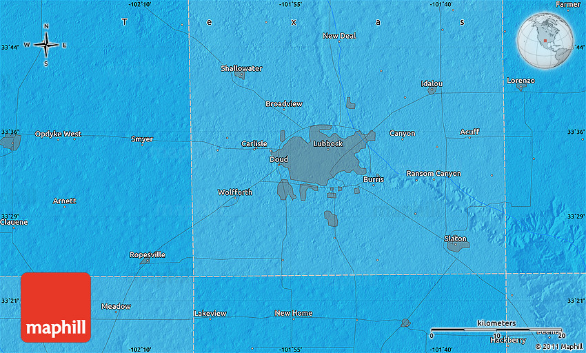 The value of Maphill lies in the possibility to look at the same area from several perspectives. Maphill presents the map of the area around 33° 32' 52" N, 101° 55' 30" W in a wide variety of map types and styles.
