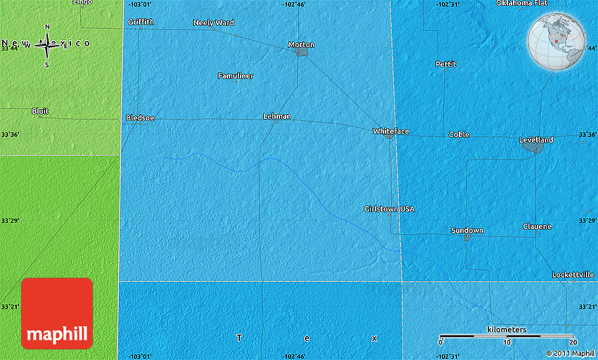 The value of Maphill lies in the possibility to look at the same area from several perspectives. Maphill presents the map of the area around 33° 32' 52" N, 102° 46' 30" W in a wide variety of map types and styles.