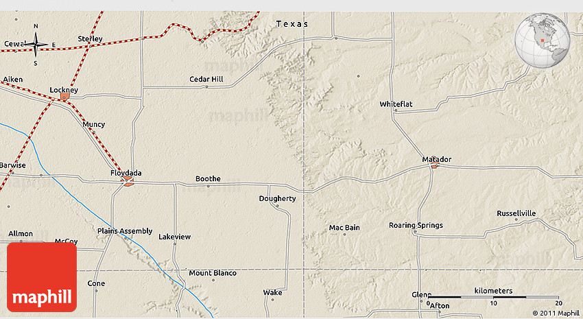 The value of Maphill lies in the possibility to look at the same area from several perspectives. Maphill presents the map of the area around 34° 0' 57" N, 101° 4' 29" W in a wide variety of map types and styles.