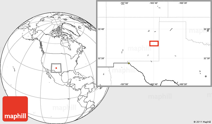Maphill is a collection of map images. This image combines a blank map with the globe centered on the area around 34° 0' 57" N, 103° 37' 30" W. Use the buttons under the image to switch to different map types.