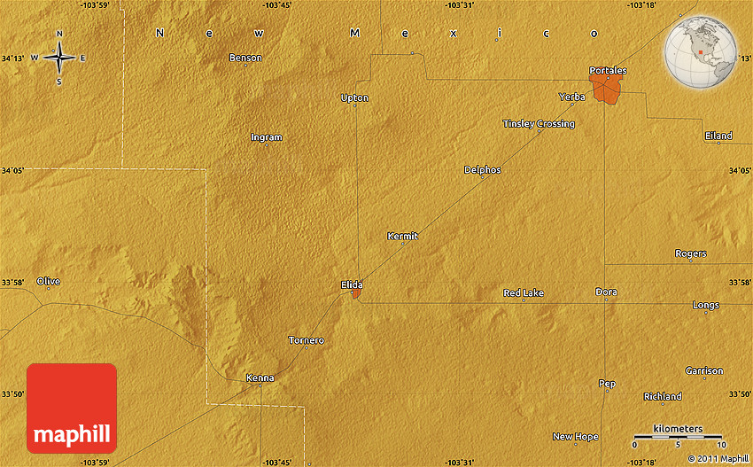 The value of Maphill lies in the possibility to look at the same area from several perspectives. Maphill presents the map of the area around 34° 0' 57" N, 103° 37' 30" W in a wide variety of map types and styles.