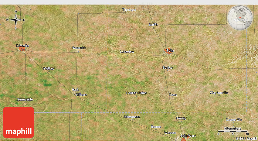 Satellite map shows the Earth's surface as it really looks like. The above map is based on satellite images taken on July 2004. This satellite map of the area around 34° 28' 56" N, 101° 55' 30" W is meant for illustration purposes only. For more detailed maps based on newer satellite and aerial images switch to a detailed map view.