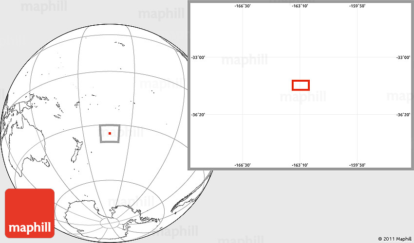Maphill is a collection of map images. This image combines a blank map with the globe centered on the area around 34° 38' 13" S, 163° 7' 30" W. Use the buttons under the image to switch to different map types.