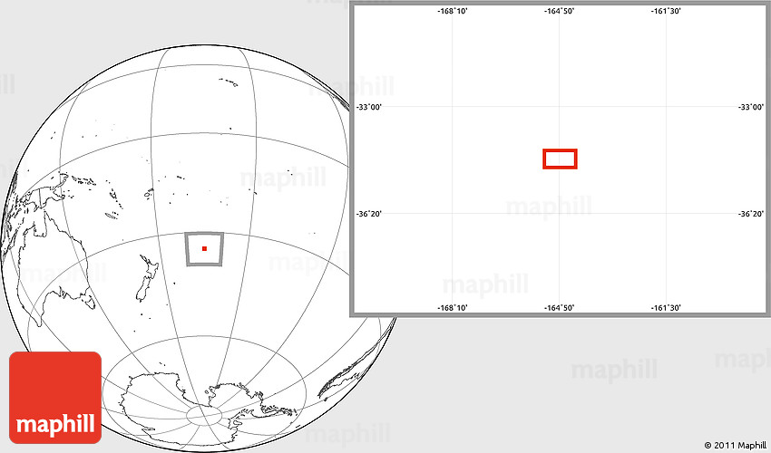 Maphill is a collection of map images. This image combines a blank map with the globe centered on the area around 34° 38' 13" S, 164° 49' 29" W. Use the buttons under the image to switch to different map types.