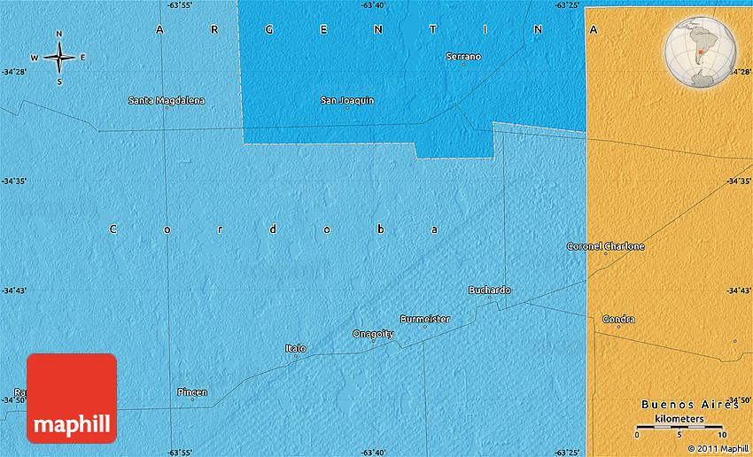 The value of Maphill lies in the possibility to look at the same area from several perspectives. Maphill presents the map of the area around 34° 38' 13" S, 63° 40' 30" W in a wide variety of map types and styles.