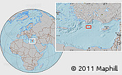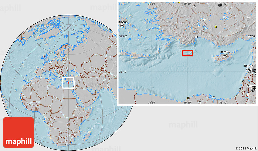 Maphill is a collection of map images. This image combines a gray map with the globe centered on the area around 35° 24' 37" N, 29° 49' 30" E. Use the buttons under the image to switch to different map types.
