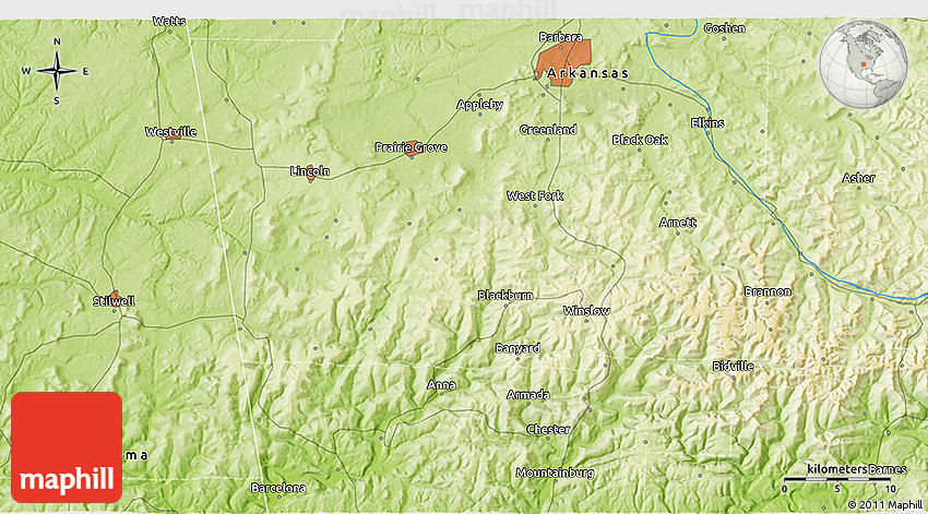 The value of Maphill lies in the possibility to look at the same area from several perspectives. Maphill presents the map of the area around 35° 52' 19" N, 94° 16' 30" W in a wide variety of map types and styles.