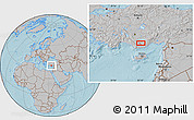 Maphill is a collection of map images. This image combines a gray map with the globe centered on the area around 36° 47' 25" N, 33° 13' 30" E. Use the buttons under the image to switch to different map types.