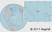 Maphill is a collection of map images. This image combines a gray map with the globe centered on the area around 36° 47' 25" N, 55° 10' 29" W. Use the buttons under the image to switch to different map types.