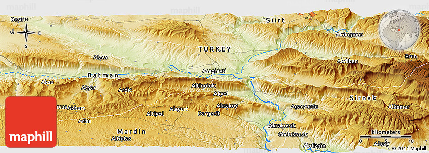 Embed the above physical panoramic map of the area around 37° 42' 7" N, 41° 43' 30" E into your website. Enrich your blog with quality map graphics. Make the web a more beautiful place.