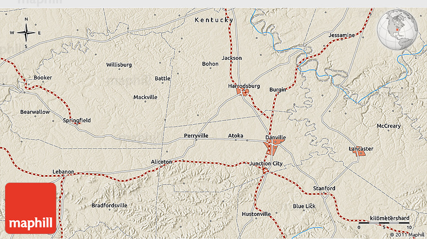 The value of Maphill lies in the possibility to look at the same area from several perspectives. Maphill presents the map of the area around 37° 42' 7" N, 84° 55' 30" W in a wide variety of map types and styles.