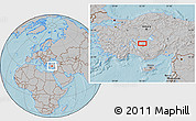 Maphill is a collection of map images. This image combines a gray map with the globe centered on the area around 38° 9' 19" N, 32° 22' 30" E. Use the buttons under the image to switch to different map types.
