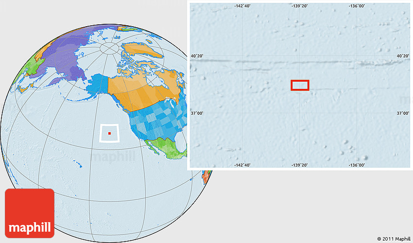 Maphill is a collection of map images. This image combines a political map with the globe centered on the area around 38° 36' 25" N, 139° 19' 29" W. Use the buttons under the image to switch to different map types.