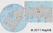 Follow these simple steps to embed smaller version of Gray Location Map of the Area around 39° 3' 25" N, 33° 13' 30" E, hill shading into your website or blog.