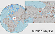 Maphill is a collection of map images. This image combines a gray map with the globe centered on the area around 39° 3' 25" N, 39° 10' 29" E. Use the buttons under the image to switch to different map types.