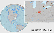 Maphill is a collection of map images. This image combines a gray map with the globe centered on the area around 39° 57' 6" N, 84° 55' 30" W. Use the buttons under the image to switch to different map types.