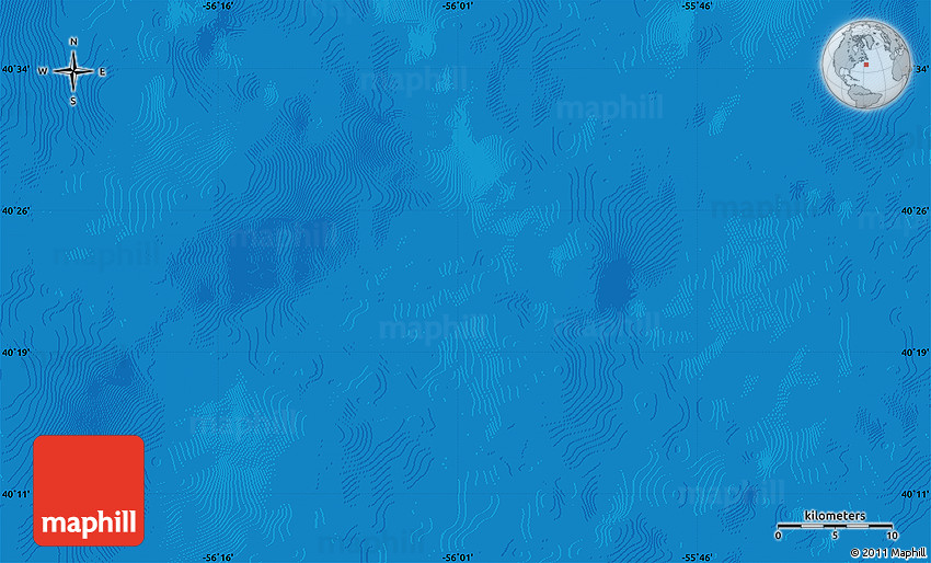 The value of Maphill lies in the possibility to look at the same area from several perspectives. Maphill presents the map of the area around 40° 23' 48" N, 56° 1' 29" W in a wide variety of map types and styles.
