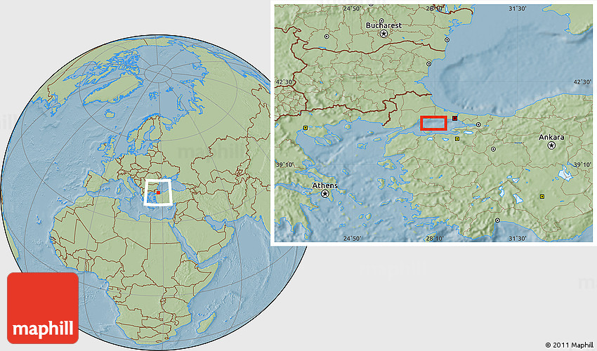 Maphill is a collection of map images. This image combines a savanna style map with the globe centered on the area around 40° 50' 23" N, 28° 7' 30" E. Use the buttons under the image to switch to different map types.
