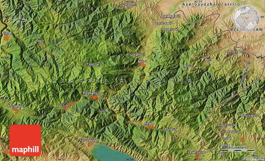 Maphill is a collection of map images. This satellite map of the area around 40° 50' 23" N, 45° 7' 30" E is one of them. Click on the Detailed button under the image to switch to a more detailed map.