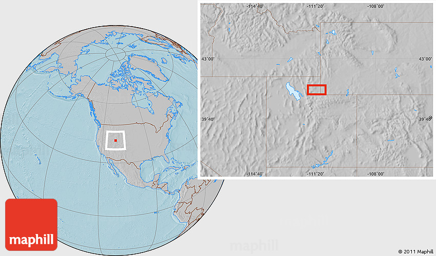 Maphill is a collection of map images. This image combines a gray map with the globe centered on the area around 41° 16' 52" N, 111° 16' 30" W. Use the buttons under the image to switch to different map types.