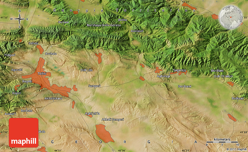 Maphill is a collection of map images. This satellite map of the area around 41° 43' 14" N, 45° 7' 30" E is one of them. Click on the Detailed button under the image to switch to a more detailed map.