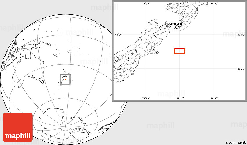 Maphill is a collection of map images. This image combines a blank map with the globe centered on the area around 43° 36' 16" S, 175° 10' 30" E. Use the buttons under the image to switch to different map types.