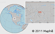 Maphill is a collection of map images. This image combines a gray map with the globe centered on the area around 44° 44' 51" N, 108° 43' 29" W. Use the buttons under the image to switch to different map types.