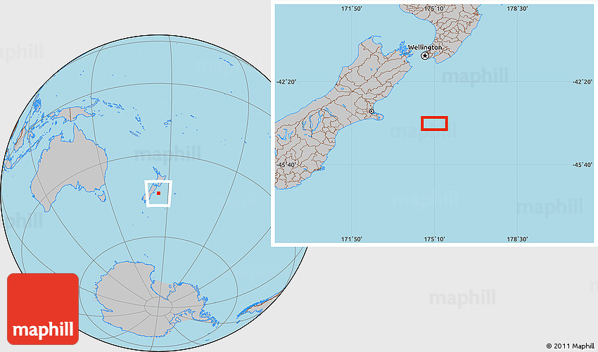 Maphill is a collection of map images. This image combines a gray map with the globe centered on the area around 44° 2' 4" S, 175° 10' 30" E. Use the buttons under the image to switch to different map types.