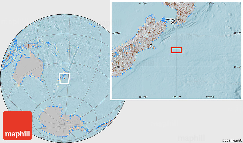 Maphill is a collection of map images. This image combines a gray map with the globe centered on the area around 44° 2' 4" S, 175° 10' 30" E. Use the buttons under the image to switch to different map types.