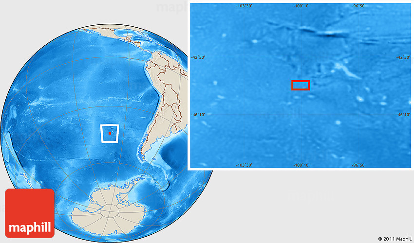 Maphill is a collection of map images. This image combines a shaded relief map with the globe centered on the area around 44° 27' 46" S, 100° 13' 29" W. Use the buttons under the image to switch to different map types.