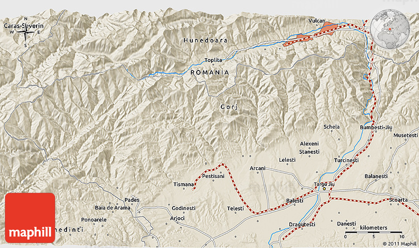 Embed the above shaded relief 3D map of the area around 45° 10' 22" N, 23° 1' 29" E into your website. Enrich your blog with quality map graphics. Make the web a more beautiful place.