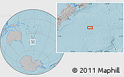 The gray location map represents one of several map types and styles available. Look at the area around 45° 18' 49" S, 176° 52' 30" E from different perspectives.