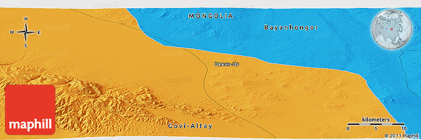 The panoramic political map represents one of several map types and styles available. Look at the area around 46° 1' 3" N, 97° 49' 29" E from different perspectives.