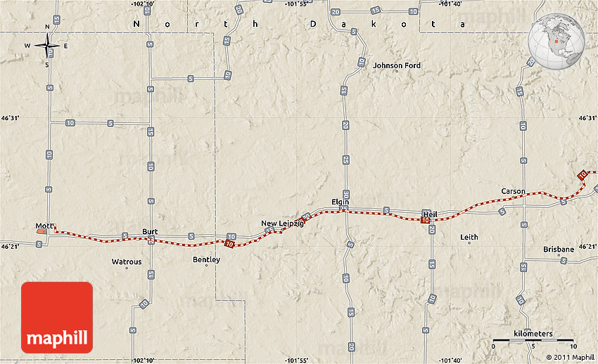 Maphill is a collection of map images. This shaded relief map of the area around 46° 26' 14" N, 101° 55' 30" W is one of them. Click on the Detailed button under the image to switch to a more detailed map.